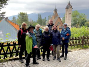 Am 28. August starteten wir für eine Woche mit 21 Personen in Fahrgemeinschaften ins polnische Riesengebirge. Durch einige Vortreffen und Informationen durch unser Mitglied Andrea Huber, waren wir bestens auf unsere Reise vorbereitet. Deshalb wussten wir, dass unser Reiseziel auf Niederschlesischem Gebiet liegt und dass das Riesengebirge hier Polen und Tschechien trennt. Auf der tschechischen Seite liegt das Sudetenland und Böhmen. All diese Begriffe und Örtlichkeiten konnten wir anfangs nicht gut unterscheiden. Für die ganze Gegend ist jedoch RÜBEZAHL, der gute Geist der Berge präsent.