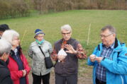 37 Wanderfreunde starteten um 9 Uhr zur zweiten ganztägigen Frühjahrswanderung mit Gemeindebus bzw. in Fahrgemeinschaften zum Sodenberg bei Hammelburg. Unser Experte, Herr Dill führte uns knapp drei Stunden durch das Trockenrasengebiet der Vorrhön, welches das gesamte Angebot an Frühblühern präsentierte: Kuhschellen, Adonisröschen, Waldschlüsselblumen, weiße und gelbe Buschwindröschen; selten aber schön: wir entdeckten auch den blauen Lerchensporn, den giftigen Seidelbast; außergewöhnlich und zum Greifen nah : Mispeln im Wacholderstrauch u.v.a.m.