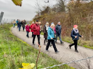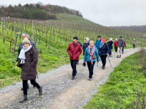 Am Tag von St. Barbara, den 4.12. machten sich 16 NaturFreunde und Gäste mit ihren zwei Wanderführerinnen Christel Schramm und Brigitte Schabel-Unger auf den Weg von Veitshöchheim über die Weinberge nach Thüngersheim. Die Gruppe hatte Glück mit dem Wetter, denn die Temperaturen lagen bei 5 Grad Celsius und es war trocken.