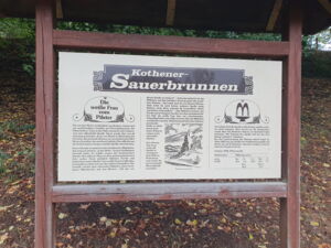 Der Weg führte vom Wanderparkplatz hinunter nach Kothen. Hier machten wir kurz Rast an dem Sauerbrunnen. Weiter über ständig leichtem bis mittelschwerem Anstieg erreichten wir nach ca. 2 Stunden den Aussichtsturm an der Mottener Haube.