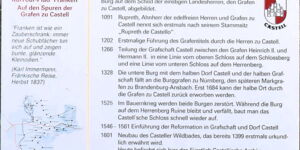 Mit dem geführten „Dorfspaziergang“ durch die „Silvanerresidenz am Steigerwald" war gleich zu Beginn ein Höhepunkt des Tages geboten. Es begann mit dem Fürstensitz der Familie Castell zu Castell und ihrem Fürstenschloss mit ihrer herrlichen Gartenanlage. Das alte Badehaus und die Museumsscheune mit Ausstellung zum Weinbau in Castell waren die nächsten Stationen. Interessant, die Kopie einer Urkunde gilt als Nachweis für den ersten Anbau der Silvanerrebe im deutschen Weinbau hier in diesem fränkischen Weinort!! Schlusspunkt bildete der Besuch der evangelischen Kirche St. Johannis, erbaut als spätbarockes-frühklassizistisches Gotteshaus.