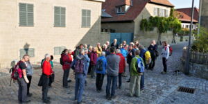 45 Minuten Fahrzeit reichten der 35-köpfigen Wandergruppe um an den Start unserer Tour, dem alten Weindorf Castell, zu gelangen. Alle PKWs stellten wir im 4 km entfernten Birklingen, unserem Ziel, ab. Es genügte ein Kleinbus, um alle Fahrer an den Ausgangspunkt zu bringen.