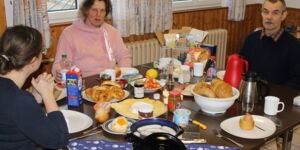 Den ersten Abend bis nach Mitternacht haben wir mit viel "weisst du noch..." verbracht. Dank der wunderbar ruhigen Lage des NFH habe ich geschlafen, wie ein Herrgöttlein. Auch wenn ich damals am Baikalsee schon gebadet und Feuer gemacht hatte, bis die anderen endlich aus ihren Schlafsäcken krochen, hier im NFH musste mich Gunnar wecken. Er hatte bereits frische Brötchen besorgt und der Tisch war mit einem reichhaltigen Frühstück gedeckt.