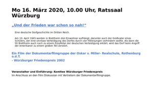 Mo., 16.03.2020, 10Uhr – Öffentliche Veranstaltung des Komitees im Rathaus Würzburg mit der Dokumentarfilmgruppe der Oskar-Miller-Realschule Rothenburg o.d. Tauber