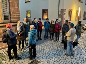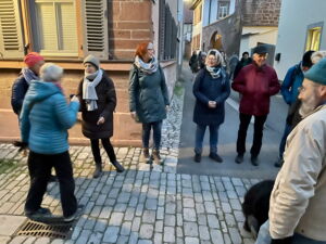 Am Tag von St. Barbara, den 4.12. machten sich 16 NaturFreunde und Gäste mit ihren zwei Wanderführerinnen Christel Schramm und Brigitte Schabel-Unger auf den Weg von Veitshöchheim über die Weinberge nach Thüngersheim. Die Gruppe hatte Glück mit dem Wetter, denn die Temperaturen lagen bei 5 Grad Celsius und es war trocken.