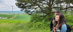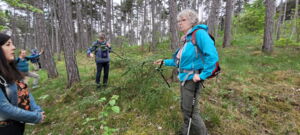 Wir durchliefen Streuobstwiesen, an Weinbergen vorbei über den Volkenberg durch den größten Schwarzkiefer-Bestand Deutschlands. Am 7er-Tisch haben wir gerastet und uns mit einer Pflanzenmeditation beschäftigt – was für uns eine neue und ruhefindende Erfahrung war. Die Teilnehmer*innen waren von der Vielfalt der Pflanzen und ihrer Wirkungsweise sehr beeindruckt und nahmen eine Menge Anregungen mit nach Hause. Als Abschluss konnten alle sich noch Ideen aus den Rezeptbüchern von Dorle Hamm abfotographieren. Es war eine tolle, informative Wanderung, die wir gerne wiederholen. Vielen Dank nochmals an Frau Dorothea Hamm